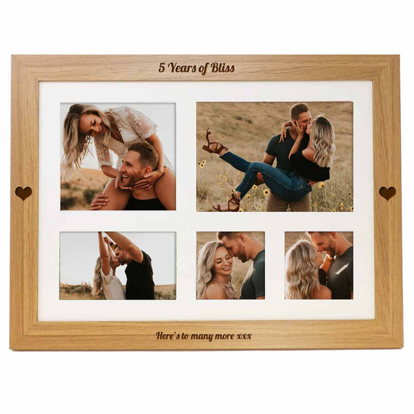 Bean bag lap tray personalised with your message. A unique practical gift for a 5th Anniversary with 5 photo apertures to display your special memories from the past 5 years.