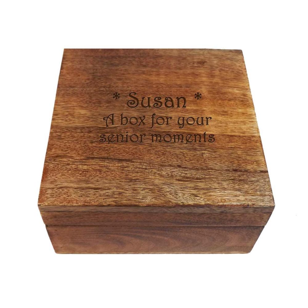 Personalised Wooden Square Keepsake Box, a great retirement gift.