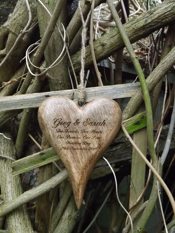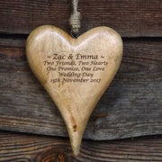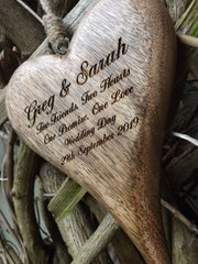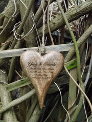 Personalised Hanging Heart in Natural Solid Wood - A Unique Wedding Gift