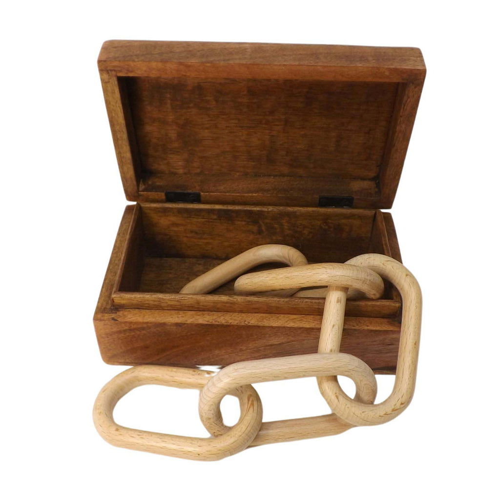 Five link Wooden Chain in Personalised Keepsake Box. A unique 5th Anniversary Gift.