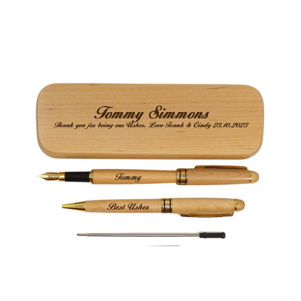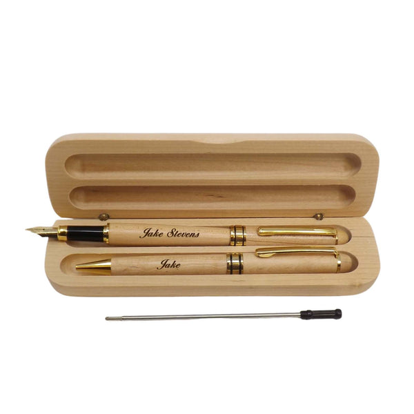 Personalised Maple Ballpoint and Fountain Pen in Maple Box | A Unique Wedding Gift