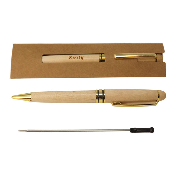 Personalised Wooden Ballpoint Pen in Maple. Perfect Birthday Gift