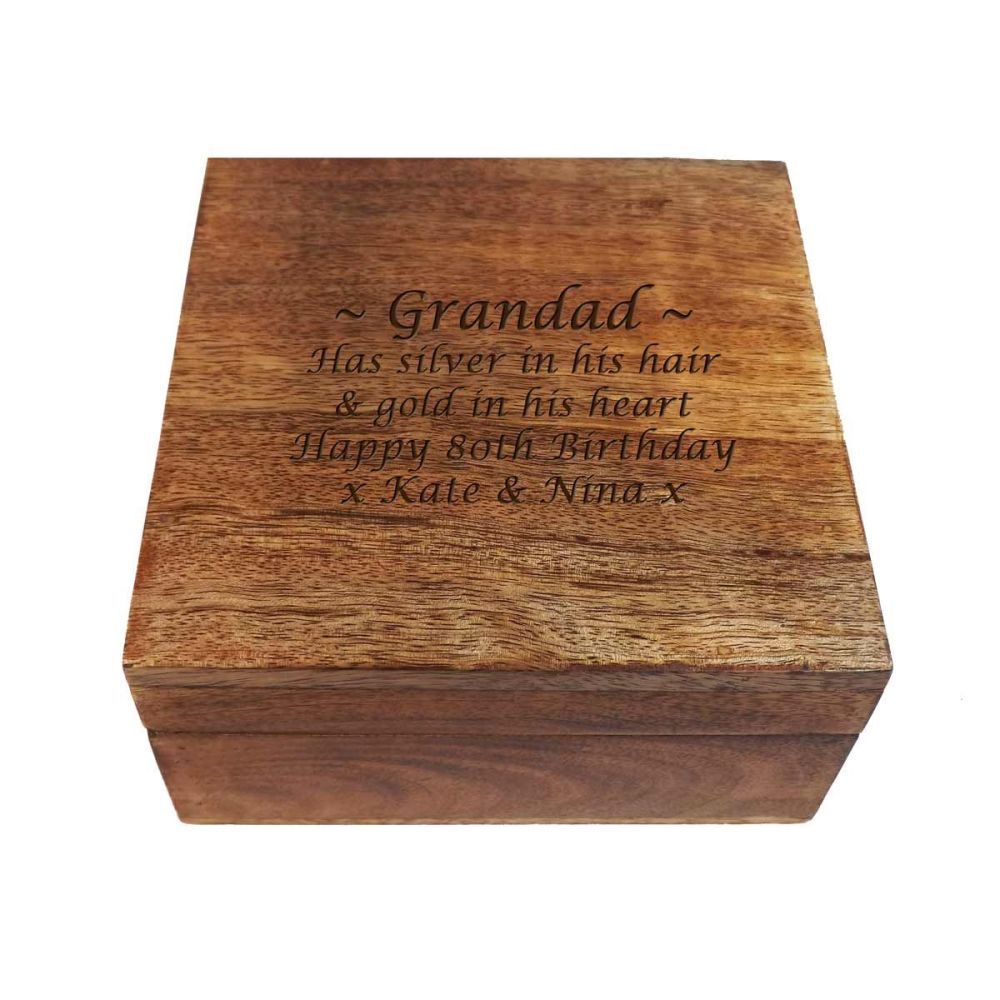 Personalised Wooden Square Keepsake Box, a great birthday gift for all ages.