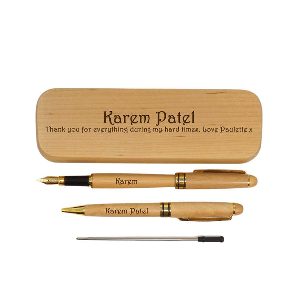 Personalised Maple Ballpoint and Fountain Pen in Maple Box | A Great Thank You Gift